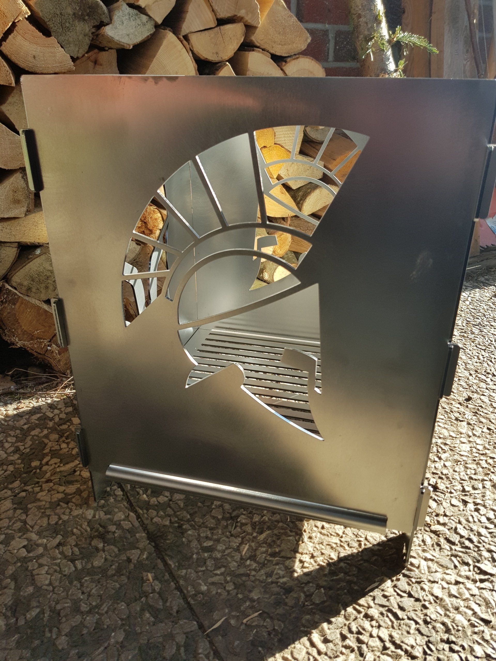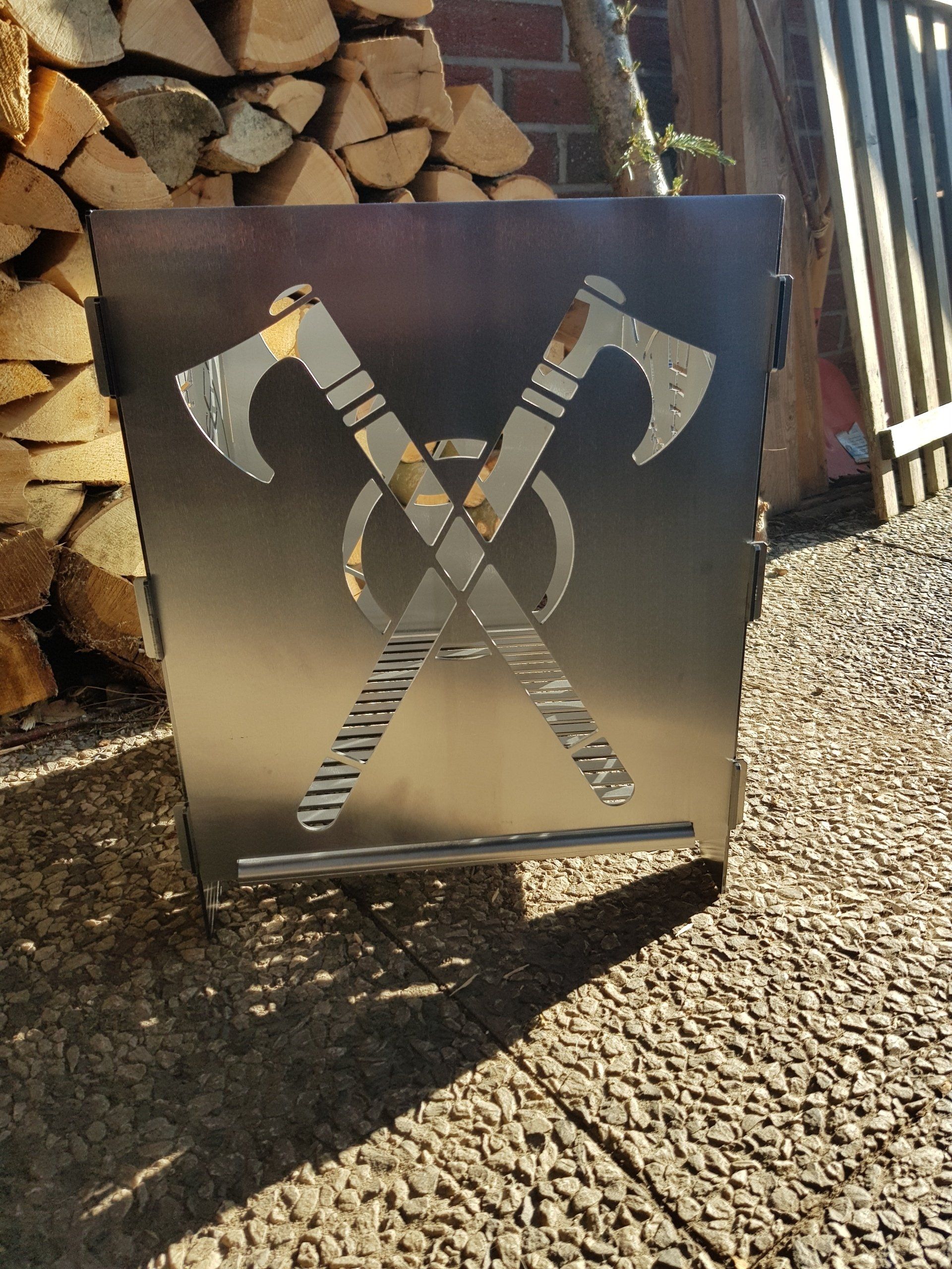 Mit seinem Brennraum von 350x350x450 mm und 3 mm Materialstärke nichts für den Rucksack, aber bestens für das Wohnmobil, den Camper, die Terrasse oder den Garten geeignet. Sie können hier zwischen Verschiedenen Designs wählen oder sich ihr eigenes Wunschdesign bestellen.